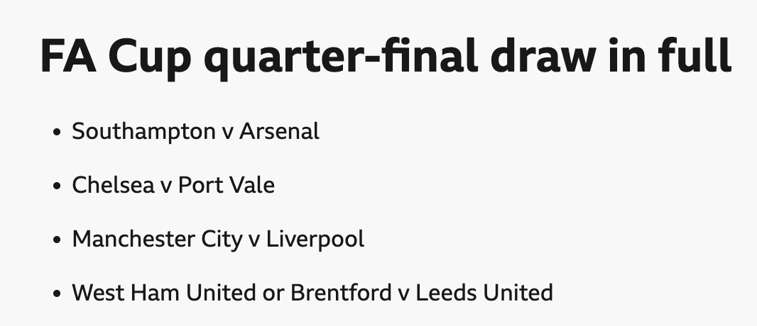Lady Luck, at the bar, chatting about her magical skills, but you don't believe it's her. She continues to pursue your interest, yes, she's seen that you're a person of sophistication, drinking a Madri. Very continental. You tell her to prove who she is, she says, leave it with me, pay attention to the FA Cup draw tomorrow.