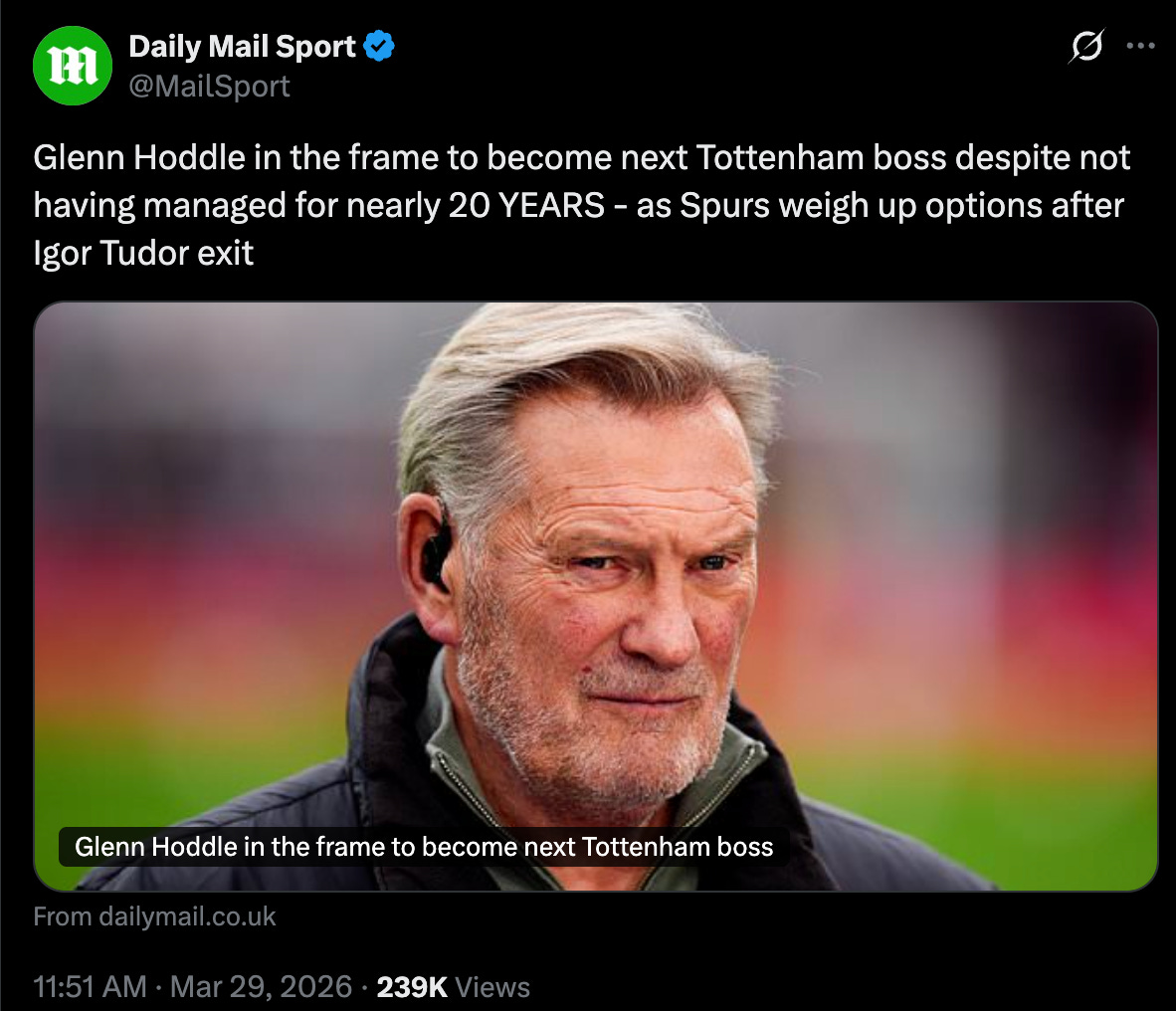 You could post ‘MICK HUCKNALL IN LINE FOR SPURS JOB,’ and I’d retweet it because anything at this point is believable.