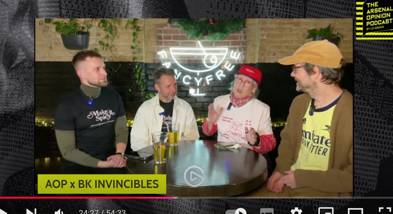 I went down to the iconic Fancy Free in Brooklyn to hang out with Matt and the BK Invincibles. We planned to do a LIVE podcast - and the experience did not live up to what we’d hoped for. It was hard to hear in the room, our LIVESTREAM looked fantastic, but the sound was garbled despite the test run going well. It is the ultimate fear when you work in production and that fear played out. My biggest ‘I am so sorry please forgive me’ goes out to the Brooklyn Invincibles, Howard and Jason, and the Arsenal fans in the bar who came up to give their LIVE hot takes. The podcast was pure chaos in the best possible way - we definitely have a model for the future of how we would run things, we just need to do a deep-dive into what went wrong on the production side.
